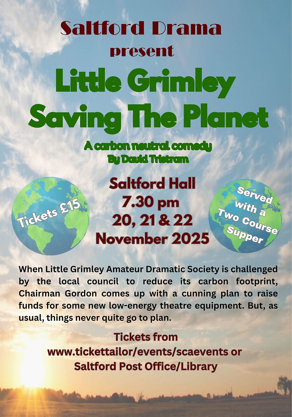 Our November production will be ‘Little Grimley Saving the Planet’  a Carbon Neutral Comedy by David Tristram.